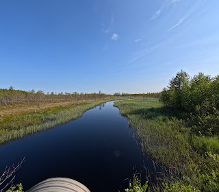 Oli lintujen laulun lisäksi äänimaailmaa. Poron röykäisy, purojen solina ja kohina. Oliko tuuli suotuisa? Jos korvasi olivat oikeassa suunnassa, saatoit kuulla kosken pauhinaa tai metsän kohinaa. Se oli jännää. Kuitenkin sillä hetkellä olin varma, että mönkijä huristelee Tirron polulla, jota en ollut löytänyt vielä.